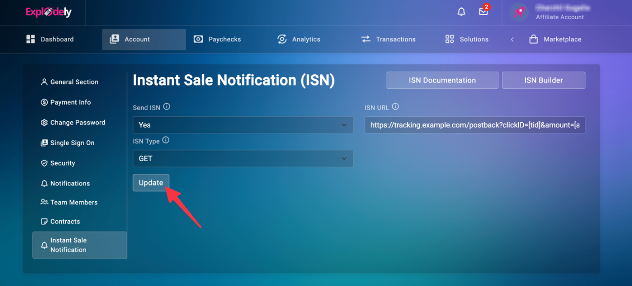 To address this, Explodely has introduced a custom ISN Builder. This tool allows you to generate postbacks for any platform—whether you’re using a third-party tracker or your own custom script.
