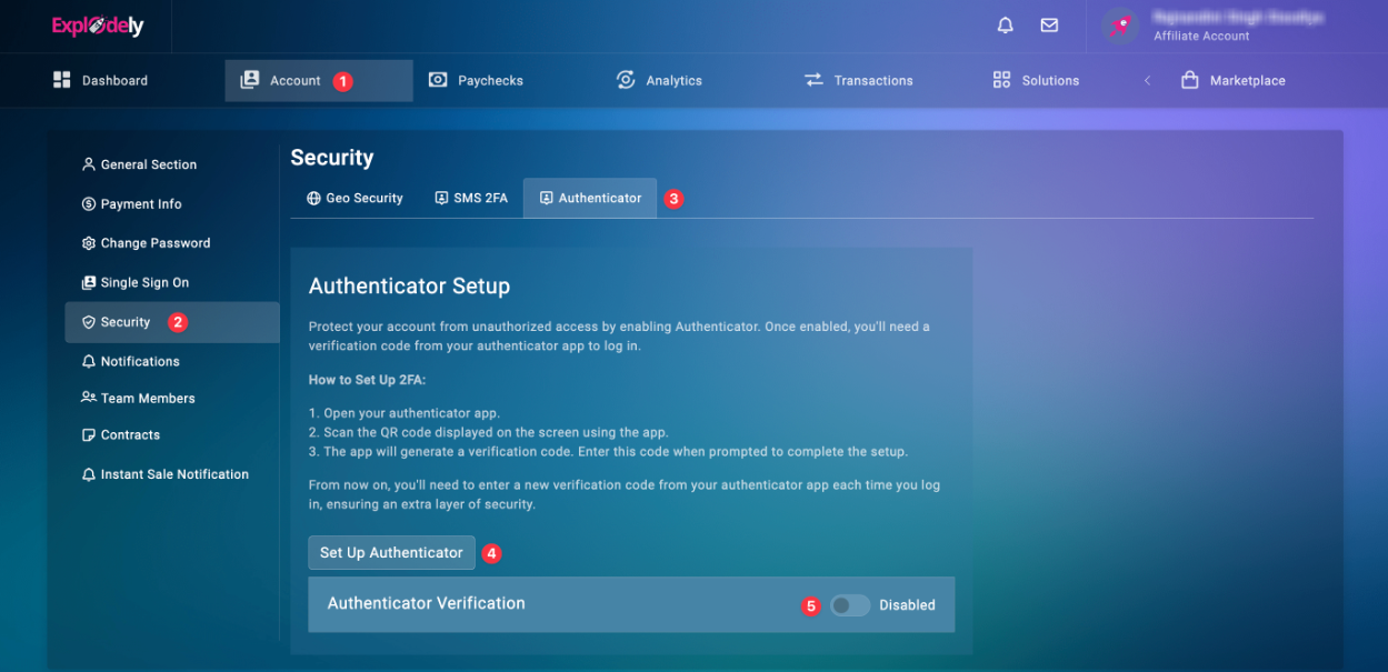 To protect your Explodely affiliate account from unauthorised access, we recommend enabling Authenticator for your account.